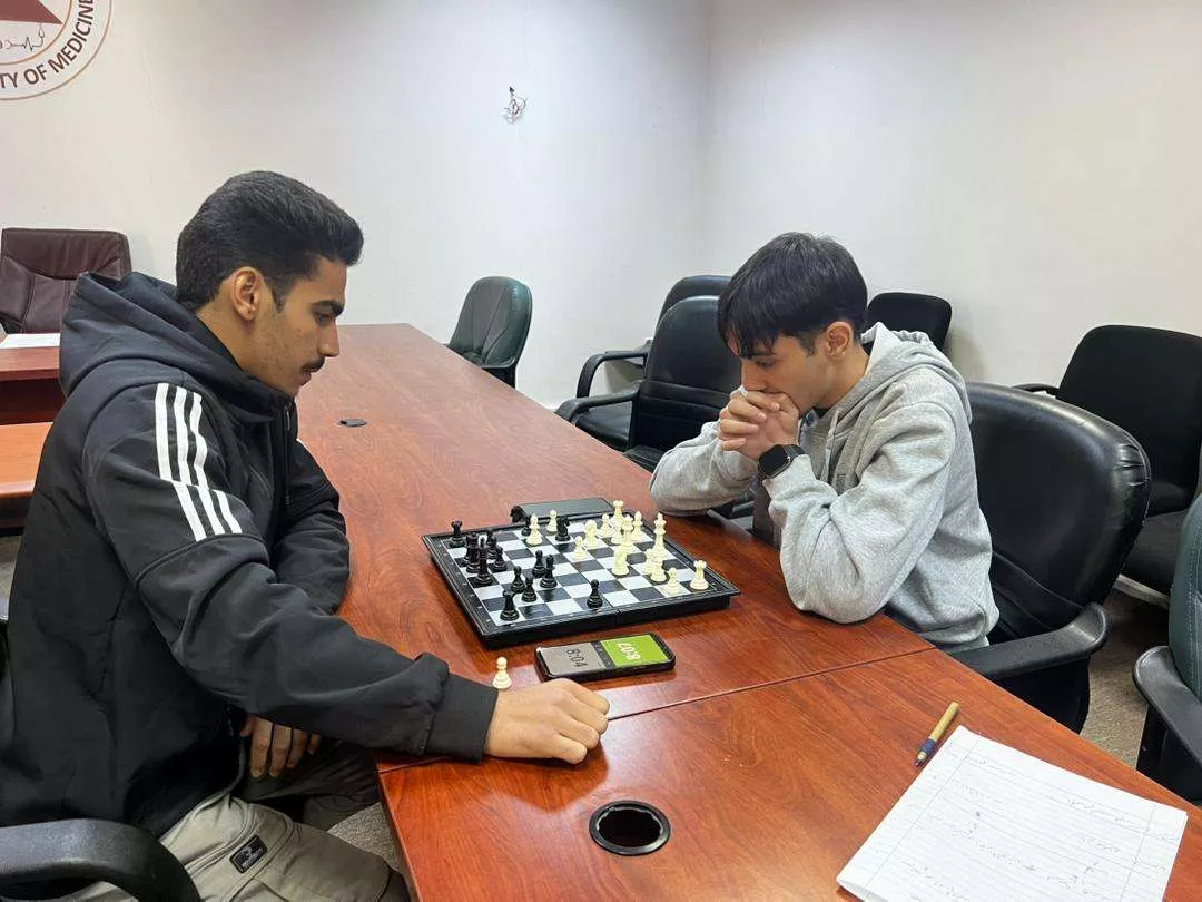 أُجريت في كلية الطب البشري اليوم الخميس الموافق 2025/11/27 تصفيات لعبة الشطرنج بمشاركة ثمانية طلاب من مختلف السنوات الدراسية. وقد تميزت التصفيات بروح التنافس والانضباط، وأسفرت النتائج عن ترشّح الطالب سالم صلاح المرغني والطالب أحمد عبدالحميد سليمان لتمثيل كلية الطب البشري في تصفيات الجامعة خلال الفترة القادمة.